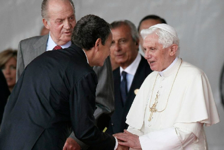 Fra flyet blev Paven ledsaget af Dronning Sofia og Kong Juan Carlos