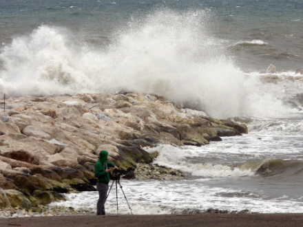 Costa del Sol fik en omgang tæsk i går, men de var ikke tørre. Tværtimod. Fire meter høje bølger væltede ind over kysterne og åd løs af strandene.