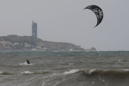 Men det er ikke alle, der er utilfredse med en ordentlig rusketur. Blæsevejret fik nemlig flere Kite-surfere til at hoppe på brættet og kaste sig i bølgerne i Málaga.