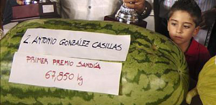 Men også når det gælder de almindelige søde honning- eller netmeloner, bliver der satset på kiloene. En gigantisk honningmelon vandt i år førstepræmie inden for sin kategori med 23,9 kilo.