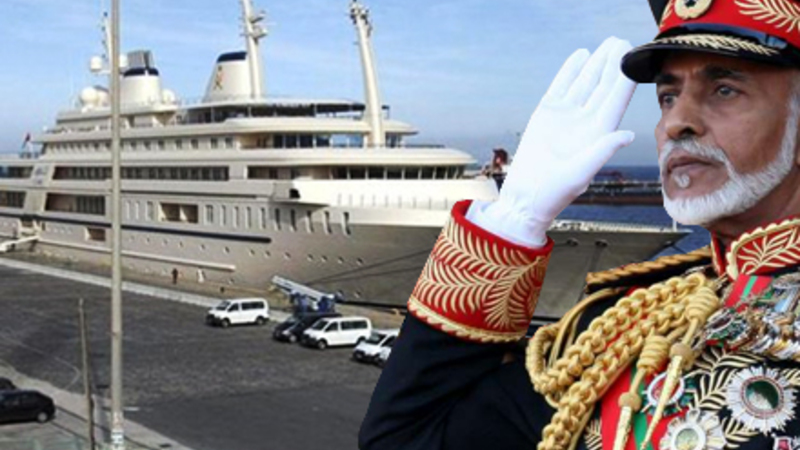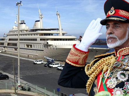 Yachten, der mest af alt minder om et mini-krydstogskib, tilhører en af verdens rigeste mænd, sultanen af Oman. Han vælter sig i luksus – uanset om det så er til lands eller vands.