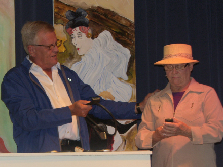 Den lille, hyggelige scene i Club Danés var smukt indrammet, og et fikst rullebord fungerede fortræffeligt bl.a. som rekvisit for en tryllekunstner, der aldrig kom – som Radio Solymars studie og som køkkenbord for Lisbeth Larsens vidunderlige madlavningskursus. Vi fik naturligvis også igen bekræftet at Lisbeth kan servere en vise!