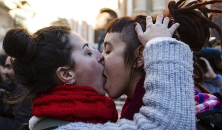 I torsdags stillede omkring 10 homoseksuelle par sig op til en hurtig demonstration mod kardinalens udtalelser. De stillede sig op i en lang række foran katedralen i Málaga, hvor kardinal Fernando Sebastián har hjemme.