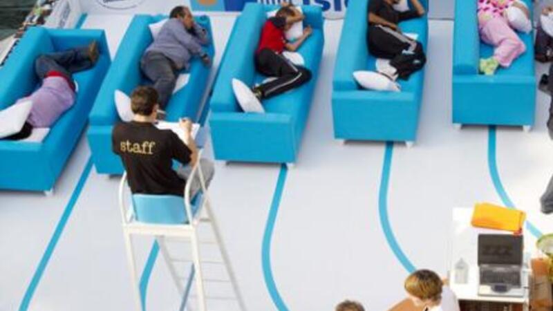 Deltagerne kunne medbringe deres eget ”sovedyr” eller en pude – men det var alt. De blev placeret på ensartede blå madrasser og overvåget af læger, som skulle holde øje med, at reglerne blev overholdt.