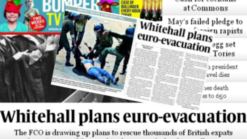 - Vi ser på, hvordan vi kan hjælpe til med en evakuering, hvis bankerne i Spanien og Portugal bryder sammen. Skrækscenariet er tusindvis af briter, der er strandet i lufthavnene i Spanien og Portugal uden penge og mulighed for at komme hjem, siger en embedsmand til avisen.