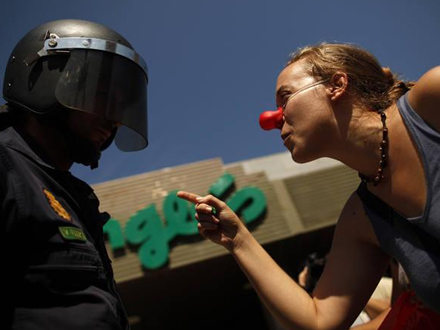 Folket protesterer mod den økonomiske krise og ikke mindst kravet om de massive nedskæringer.