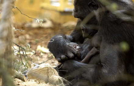 Da dyrepasserne lørdag morgen kom på arbejde for at give gorillaerne mad, så de hvorledes gorilla-moren forgæves forsøgte at vække sin 14-dage gamle hun-unge til live.