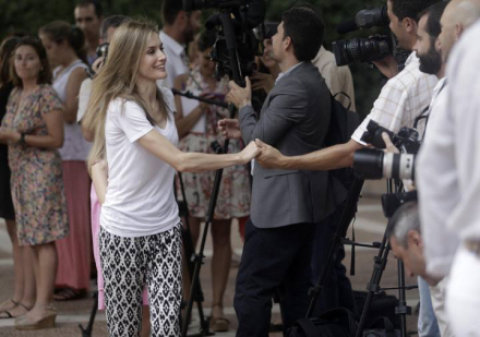 På et tidspunkt tog Letizia sin ældste datters hånd for at få hende til at vinke til de mange fotografer og journaliser, der var mødt op for at få ”sommerens billede”.