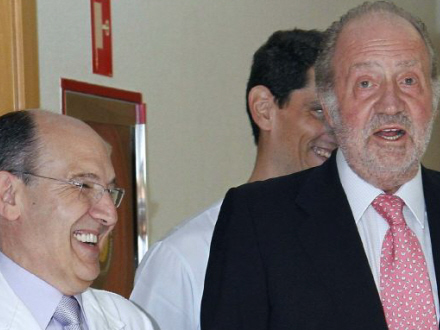 - De har både dyt-horn og det hele, grinede kongen, da han humpede ud fra USP-sygehuset i Madrid.