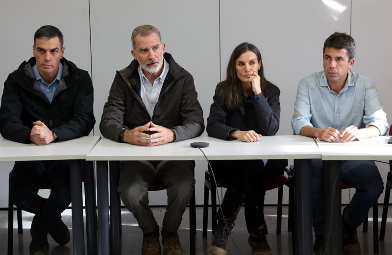 Her mødtes de med præsidenten for Valencia Regionen, Carlos Mazón, for sammen at tage til den hårdt ramte by Paiporta.
