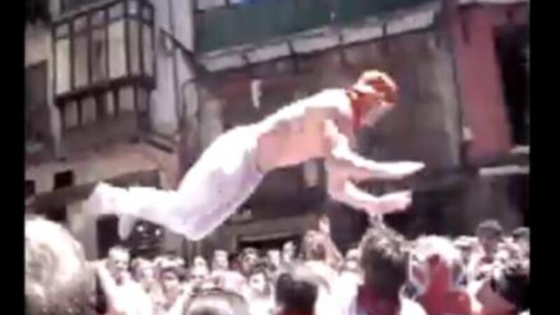De vovefulde unge kaster sig ud fra seks meters højde, hvorefter de bliver grebet af en gruppe venner, der befinder sig lige nedenunder. Men en ung kvinde mistede pludselig grebet og styrtede til jorden, inden der var nogen, der nåede at tage imod hende. Kvinden blev kørt på sygehuset i bevidstløs tilstand. Der er ingen oplysninger om hendes identitet.