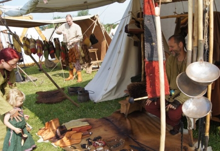 I flere boder på festivalpladsen i Trelleborg kunne man købe skjolde, knive og spydspidser, som var blevet anvendt i datidens krigshandlinger.