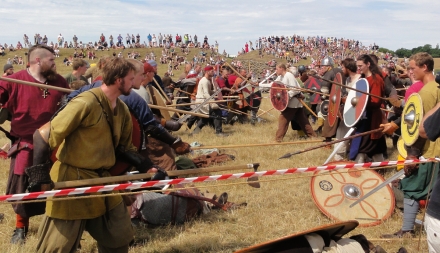 200 krigervikinger fra 12 lande er samlet til det store slag om Trelleborg. I arenaen for kamptræning ses gennem hele dagen frygtindgydende krigere med sværd, spyd, økser og skjolde. Inden kampene er der instruktion på engelsk af den kampansvarlige. Alle er iført krigsdress med brynjer, hjelme, arm- og benbeskyttere.