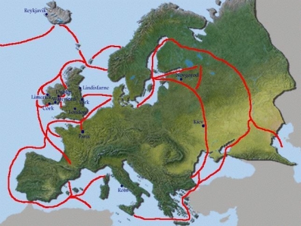 De danske og norske vikinger tog på togter, hvor de kom til både England, Skotland, Færøerne, Island, Grønland Frankrig og Spanien. De svenske vikinger drog ned gennem Rusland og nåede så langt som til Konstantinopel.