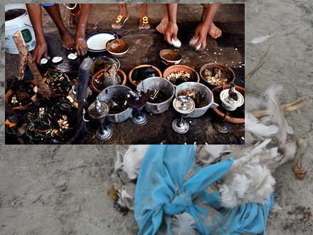 Ritualerne er en del af religionen Santería, som er en blanding af katolicisme og afrikansk religion. Santería stammer fra Cuba og praktiseres også i Vest-Afrika og Caribien.