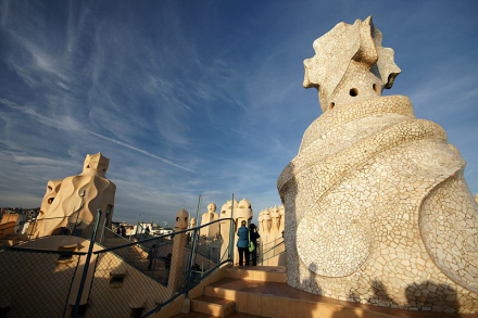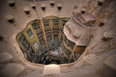 I Casa Mila – også kaldet La Pedrera - var det Gaudís ambition, at beboerne skulle socialisere sig med hinanden, og derfor blev der kun installeret elevatorer på hver anden etage.