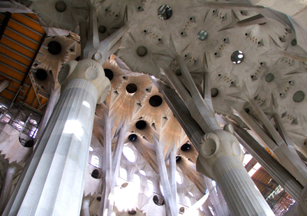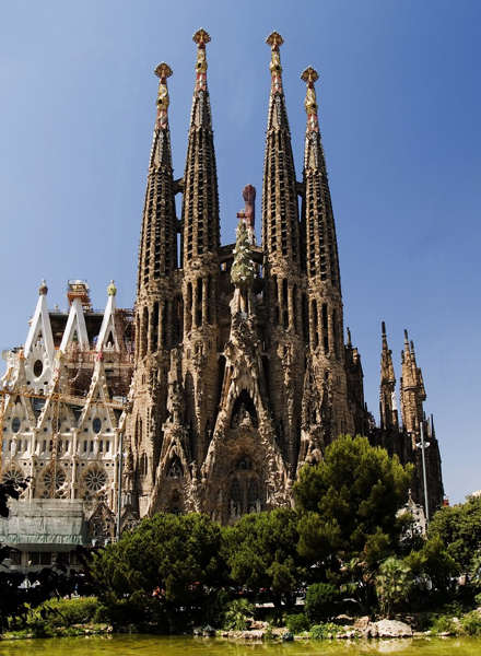 La Sagrada Familia stikker ganske højt op i vejret. Ligesom mange andre kirker er der direkte referencer til den gejstlige tradition med de lodrette højder i udformningen af selve den store kirkebygning.