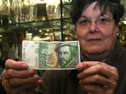 Ifølge Nationalbankens beregninger ligger landets borgere nemlig inde med pesetas for godt 1,7 milliarder euro. Man kunne faktisk købe næsten 15.000 gennemsnits-boliger på 70 kvadratmeter for de mange ubrugelige penge.