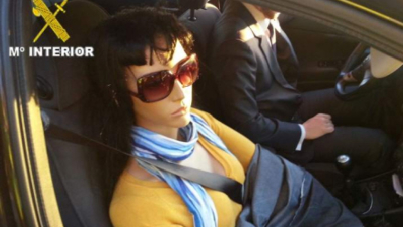 Færdselspolitiet har fanget en bilist, der snød sig hurtigt gennem trafikken på den trafikerede landevej A-6 i Madrid ved brug af en dukke.