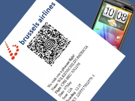 Umiddelbart efter modtager vi ”boardingkortet” som en QR-kode på vores smartphones