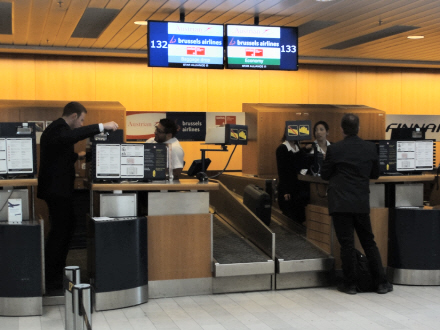 23 timer inden afrejsen fra Kastrup, går vil ind på Brussels Airlines hjemmeside for at checke ind og vælge pladser i flyene. Det hele går meget let.