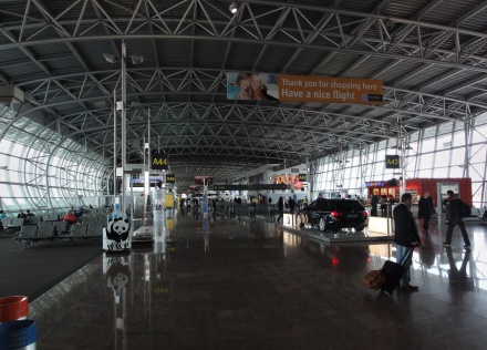 Flyet lægger til ved den nye finger. Herfra går også det næste fly videre til Málaga
