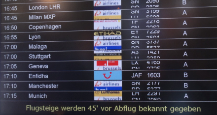 Gaten til Málaga står ikke på tavlen, da vi lander. Men faktisk står der allerede A48 på boardingkortet, som vi fik i København.