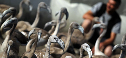 Før flamingoerne forlader lagunen, bliver de ringmærkede. Omkring 300 frivillige fra hele Spanien - og til tider også fra Europa - fanger kyllingerne, der endnu ikke kan flyve - og anbringer dem i særlige indhegninger, der er specielt bygget til formålet. Her vejes og ringmærkes kyllingerne, og det bliver undersøgt, om de er ved godt helbred. På den måde kan man fremover føre register og gennemføre videnskabelige og biologiske undersøgelser af deres færd. Efter registreringen bringes kyllingerne sikkert tilbage til vuggestuen.