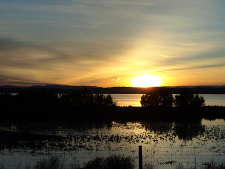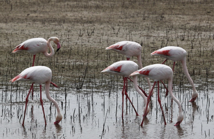 Med foråret ankommer flamingoerne i tusindvis og besætter de midterste sandbanker i søen. Ved solnedgang er det et fantastisk syn med deres langstrakte og elegante silhuetter.