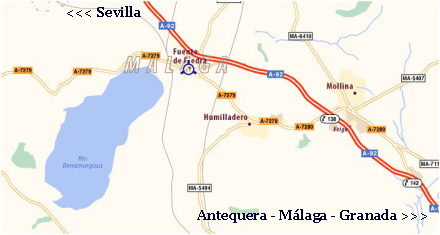 Her ligger Fuenta de Piedra. 76 km. og 55 minutter fra Málaga