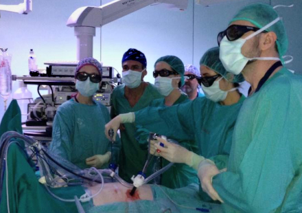 Det nye er 3D - de tre dimensioner – i operationen. Kirurgerne ser stadigvæk på skærme, med de har taget 3D-briller på – som om de var i biografen – og ser nu alle detaljer på skærmen i tre dimensioner.