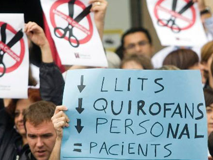 Fagforbundet Metges de Catalunya understreger, at strejken ikke handler om lægernes løn, men om bevarelse af et sundhedssystem, som i år har været præget af så voldsomme nedskæringer, at ventelisterne er vokset med 23 procent, og der er nedlagt 1.500 sengepladser.