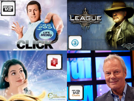 'Click', amerikansk komedie fra 2006 på TV2, 'Det hemmelighedsfulde selskab' med Sean Connery på TV3, Den amerikanske familiefilm 'Bliv fortryllet' på Kanal 5 - eller hvorfor ikke hygge dig med Jarlens Quizshow på TV2 Charlie og derefter se dansk lystspil med blandt andet Dirch Passer?