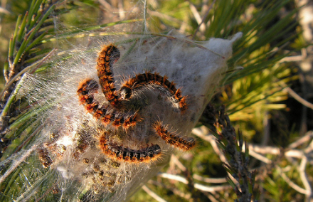 ”På mine ture ud i det Andalusiske landskab ser jeg utroligt mange fyrretræer, som er angrebet af disse larver i deres hvide spindelvæv. De lokale siger, at larverne får træet til at visne. Især på turen til Ronda fra San Pedro er det slemt, og der hvor turisterne og jeg holder pause nær Ronda, har vi stødt på flere processionsrækker af disse giftige banditter.