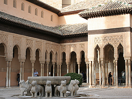 Løvegården, der er det absolutte trækplaster på Alhambra, blev spærret af for restaurering i 2002. Nu fremstår torvet med det berømte springvand og de 12 løver i en nyrestaureret udgave, som i al sin arkitektoniske pragt skal vise de besøgende, hvorledes torvet så ud i den mauriske storhedstid i det 14. århundrede.