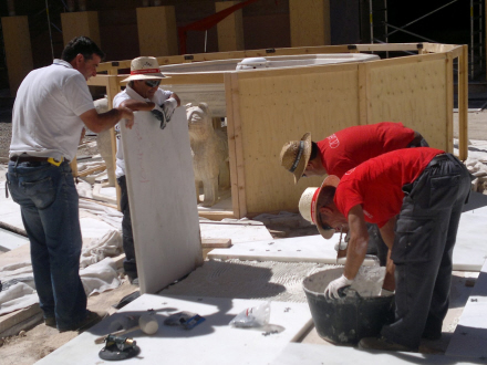 Blandt nyskabelserne på torvet er den hvide marmor, som skal give monumentet et mere stateligt udseende. Der er lagt 250 stykker marmor særligt udskåret og designet til det 400 m2 store torv.