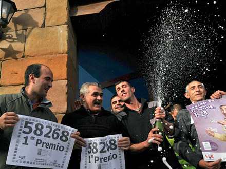 Nummeret var blevet solgt på 1.800 tiendedels-lodder, der hver gav 400.000 euro til stort set hver eneste indbygger i den lille landsby Grañén, et landbrugssamfund i det tørre og golde Los Monegros-område i Huesca Provinsen.