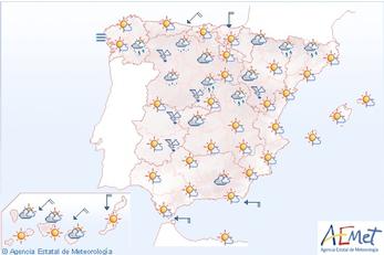 I dag og i morgen letskyet og en del sol, svag vind fra syd og 26 grader, om natten omkring 20 grader.