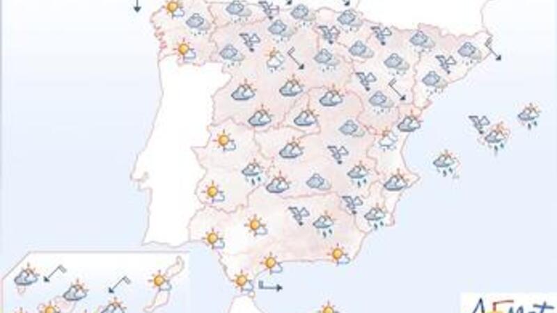 Der er udsigt til mere nedbør i dag i Lleida, Girona, Barcelona, Huesca og Teruel. Her kommer der omkring 25 mm. Regn.