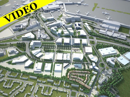 Der skal også være bolig- og afslapningsområder, og det hele bindes sammen med lufthavnen af et shuttle-system, som også er lagt sammen med det lokale tog-netværk.