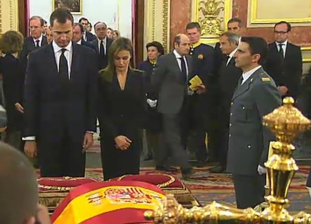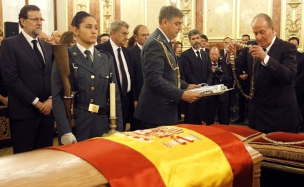 Adolfo Suárez ligger lit de parade i kapellet 'El Salón de Pasos Perdidos' ganske få meter fra det sted, hvor en gruppe kupmagere den 23. februar 1981 forsøgte at udnytte de sociale uro og få militæret til magten.