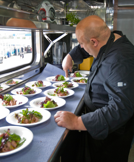 Kokkene på toget er efter selskabets eget udsagn blandt de bedste i Nordspanien. Der bliver serveret morgenmadsbuffet, hvor tjenere desuden er til rådighed. Lokale specialiteter som tortillas, tærter, ost og kød kan du også få smagt på. Der er nyt og originalt mad at smage på hver dag.