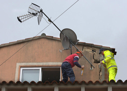 Men det er ikke kun det kolde, hvide element fra oven, der har skabt store problemer i det seneste døgn. I Villalonga slog et lyn ned i et hus i villakvarteret Pas de la Guardia, hvor dele af husets overetage simpelthen gav efter og brasede sammen.