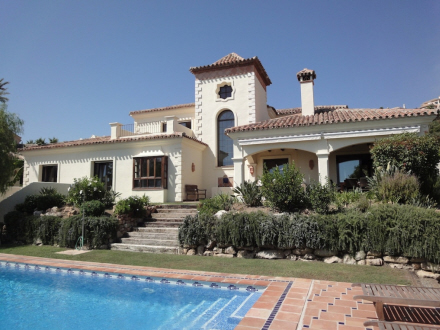 Denne prestigefyldte ejendom, bygget på tre niveauer, er beliggende på en grund på 4.513m2 (+ en ekstra grund på 2.068m2) i det mest udsøgte, lukkede, boligområde i Marbella.Enestående panoramaudsigt over havet og bjergene med udsigt til Afrika og privat “infinity” pool. Næsten hele ejendom er omgivet af terrasser. Den luksuriøse ejendom opfylder alle krav: Høj klasse materialer, kombineret med den nyeste teknologi. Faciliteter: jacuzzi på tagterrassen, med separat bad og toilet, Indendørs swimmingpool, fitnessrum, sauna, dampbad, central tøjvask system, central støvsugning, Lift, billardrum, festlokale, Bodega, TV Room, Home Cinema, garage til 5-7 biler.