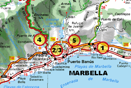 Nueva Andalucia, der også er kendt som “The Golf Valley, er beliggende nogle få km vest for Marbella by, lige overfor verdenskendte Puerto Banus - med det internationale jet-set liv om sommeren - de store yachts - flotte biler - og et utal af barer, restauranter og diskoteker. Stort set alle de kendte modemærker er ligeledes repræsenteret i de mange butikker, der har åbent 24/7 hele sommeren.