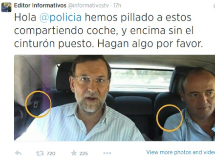 Billedet viser, at selv landets premierminister, Mariano Rajoy, deler bil med andre. Det gør vi nok alle sammen engang imellem, men det er blevet lettere at komme i kontakt med fremmede, der mangler et lift, eller bilister, der gerne vil have en passager at dele benzinomkostningerne med.