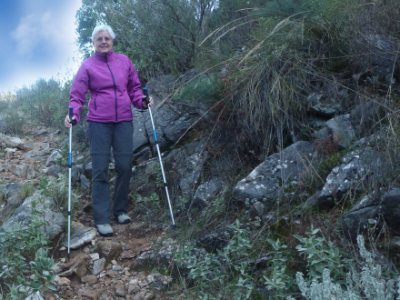 Else Byskov på vej ned mod bækken Arroyo de Juanar