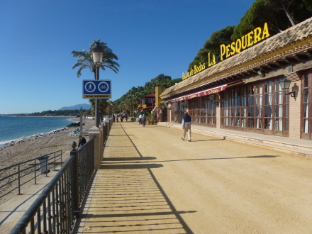 Spadsereturen mellem Marbella og Puerto Banús er en kombineret cykle- og vandresti, der løber helt nede ved vandkanten. Den nye kystlov ”La Ley de Costas” har nemlig bestemt, at alle strande i Spanien skal have offentlig adgang. Man kan altså ikke længere have en privat strand med bro og luksusyacht uden for huset.