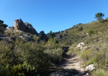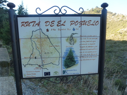 På et skilt står der: Sendero Pozuelo. Der står også, at turen er fem kilometer lang, men det skal man nu ikke tro på, for den viser sig at være ni kilometer, og der er 450 højdemeter at overvinde. Det er en skøn rundtur igennem et vildt og betagende landskab, og man skal beregne, at turen tager tre mindst timer - plus pauser.