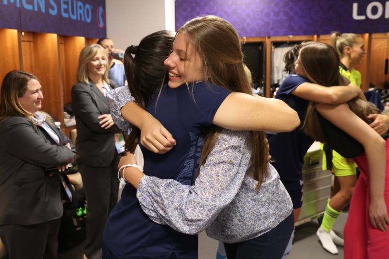 Efter Spanien havde sikret sig pladsen i kvartfinalen gik prinsesserne ned i omklædningsrummene for at møde spillerne og fejre sejren med dem.